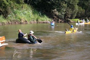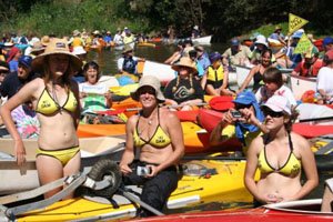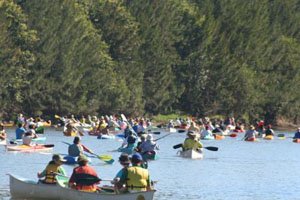 There were over 90 canoes and kayaks on the river. It was a great sight with so much colour. Channel Nine had a helicopter, Channel 7 was there and two gyrocopters circled over head.