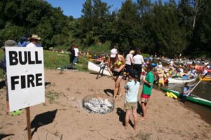 At a Mary River turtle nesting bank people heard why the combination of riffles, pools and sand banks make the area unique in the world with a unique series of species. We were all given some of the glossy propaganda distributed by the government. At the end of the paddle this all went into a fire called the burning of the bullshit.