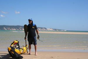 The morning started out cool but pleasant with a 15 knot off shore south westerly. The kayak slipped out easily into the gutter that I had come into the previous night but luck was not on my side. After paddling furiously to get past a sand bar I was almost out when a wave broke 5m ahead. The spray deck is not waterproof so it was a wet bum for the rest of the day.