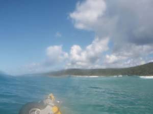 Conditions rounding Double Island Point were glassy and perfect. When the bigger waves came through the backwave off the rocks made it bumpy so taking photos was a bit tricky. After rounding the point there was a swell of about 1.2m which gave some really good surf on the north end of the beach with no-one riding the waves.