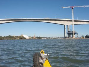 Around the airport the water is very shallow for a long way out so rather than go out round it, an hour or so was spent in water less than 300mm deep. The water was clear which was a surprise and this lasted almost until I could see the Gateway Bridge.