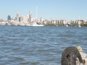 Again the weather was perfect at the start. The smog was again very evident though came up and seemed particularly bad around the port. A westerly wind came up as I made my way up the Brisbane River. This made things a bit wet, but it did blow the smog away.