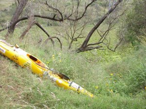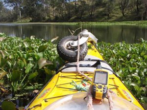 John was at Savages so we had lunch together and I set off up river only to come back with my tail between my legs. There was a mass of hyacinth about 2km long with banks that had almost impenetrable vegetation. There was nothing for it but to walk over to Fernvale and up the highway. We called it quits at Hayes Landing on Lake Wivenhoe with a total of 117km for the three days so far.