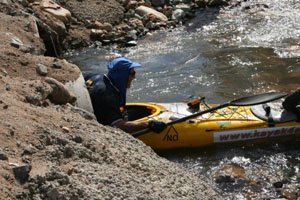 Every little creek that came in was welcome as it added to the flow and the water built up so that the rocky bits were easier. Then I noticed something a bit odd. The flow started to get less. It took about 20km to build up again.