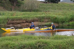 Glenda was in a K1! Only kayakers will understand this but she carried it around some obstacles and over some shallow bits she cocked it to one side to lift the rudder. There is no way I could have done that. It was truly impressive stuff. In the pools we paddled at between 8.4 and 8.9km/hr.
